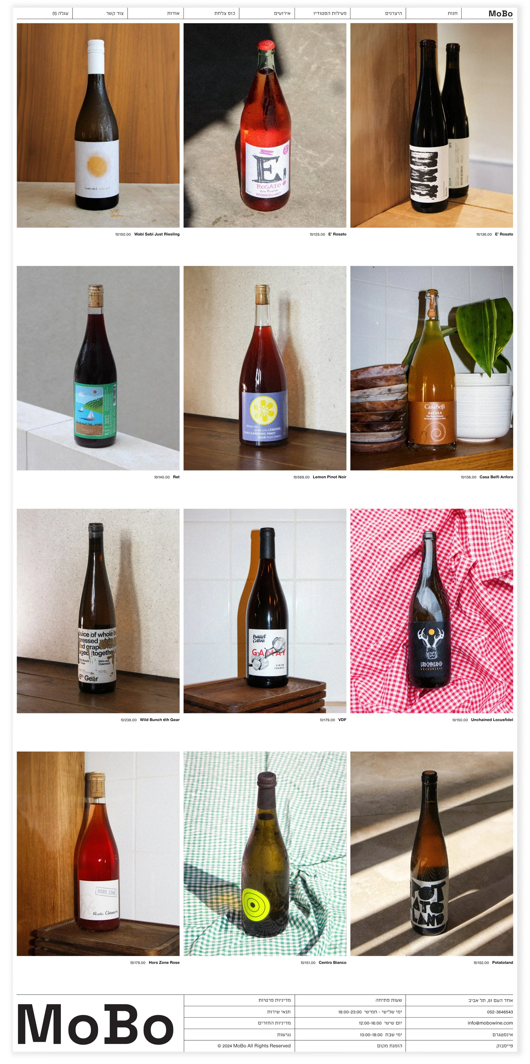 Website design for MoBo, a boutique wine studio that curates and imports natural wines from Europe with meticulous care. MoBo is a full wine experience: customers can come to the studio to enjoy wines on-site paired with unique small bites, attend private tasting events, participate in wine courses, and enjoy special collaborations with other wine bars. The website brings this experience online, offering users detailed information about each wine and its exceptional producers, along with chef-curated recipes tailored to specific wines. My work focused on crafting a visual language and digital experience that balances elegance, warmth, and usability, tailored to MoBo’s sophisticated clientele.