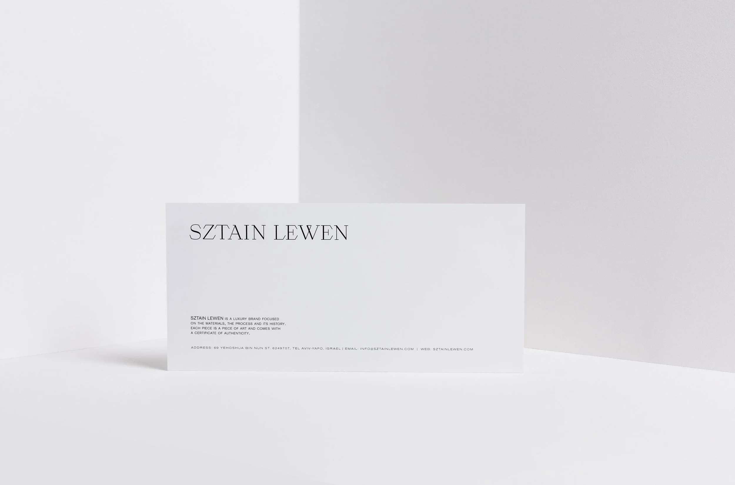 Sztain Lewen is a luxury fashion brand focused on the materials, the creation process and its history. Each piece is a piece of art and comes with a certificate of authenticity. The branding process included logo, symboL and packaging design, as well as UX UI and visual language.